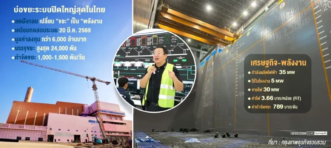 位于安努垃圾处理中心的焚烧发电项目,由NewSky Energy(Bangkok)公司运营,3月20日首次进料试运行,总投资超60亿泰铢,直接上马泰国最大规模“封闭式垃圾池”。这不只是处理垃圾,而是重构整个城市的“废弃物逻辑”。