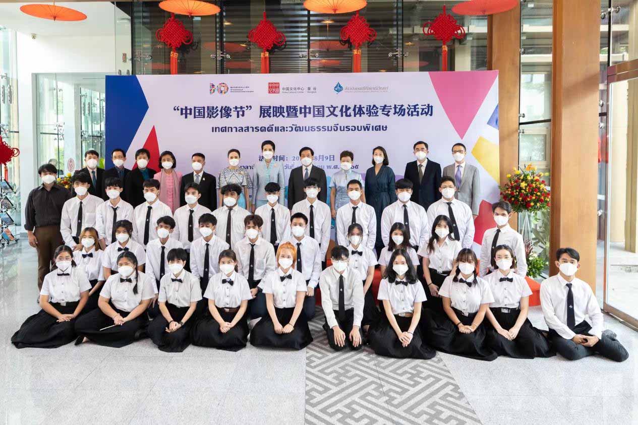 8月9日,驻泰国大使韩志强偕夫人王欢与泰国总理巴育夫人娜拉蓬、文化部长夫人拉查达共同出席“中国影像节”展映暨中国文化体验专场活动。甘拉雅尼音乐学院副校长阿诺泰带领近50名师生参加活动,体验中华优秀传统文化的魅力。